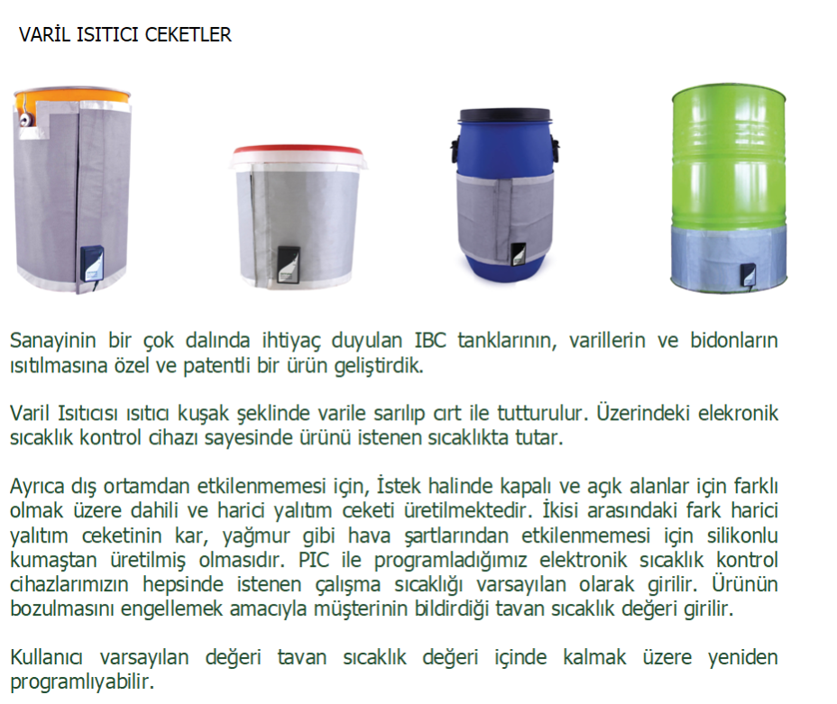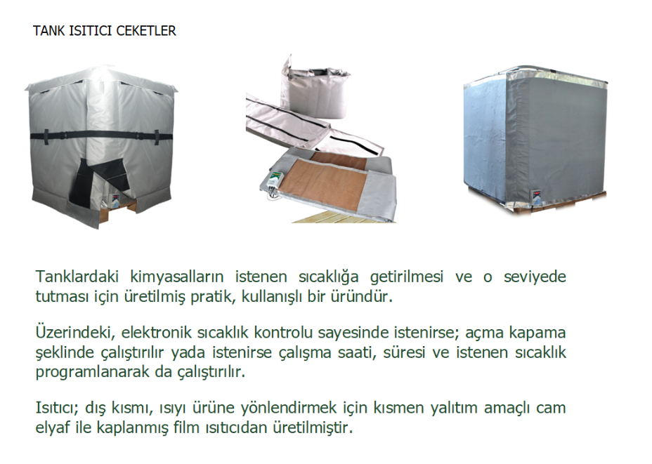 Isıtıcı ceketler istediğiniz şekilde tasarlanır ve ısıtıcı ekipmanlar bu ceketlerin içine yerleştirilebilir veya ceketten ayrı bir şekilde kullanılabilir.