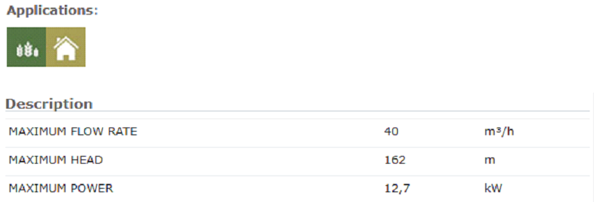 Temiz kullanım suyu ve kimyasal olarak aşındırıcı olmayan sıvıları, evsel kullanımlar, sulama, tarım ve orta-küçük tanklarda otomatik dağıtımı için uygundur.