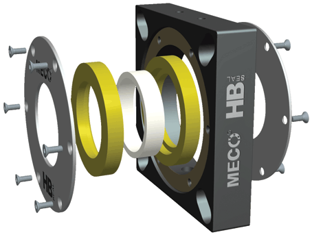 The MECO HB Seal model is ideal for screw conveyors/scrolls, small blenders, bucket elevators, and similar rotating equipment used in bulk process industries. The HB Seal model is used on horizontal, inclined and vertical shafts for unsplit installations.